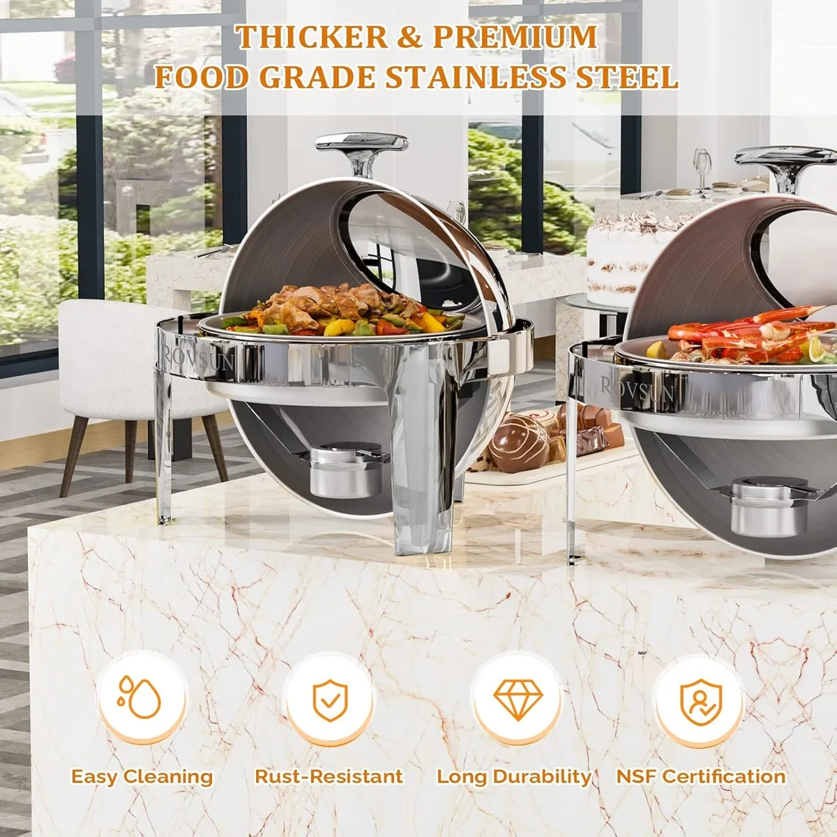 Marmite Chauffante Ronde en Acier Inoxydable 6 L — Couvercle Relevable 180°, Maintien Chaud & Froid, Idéale Buffet et Réceptions