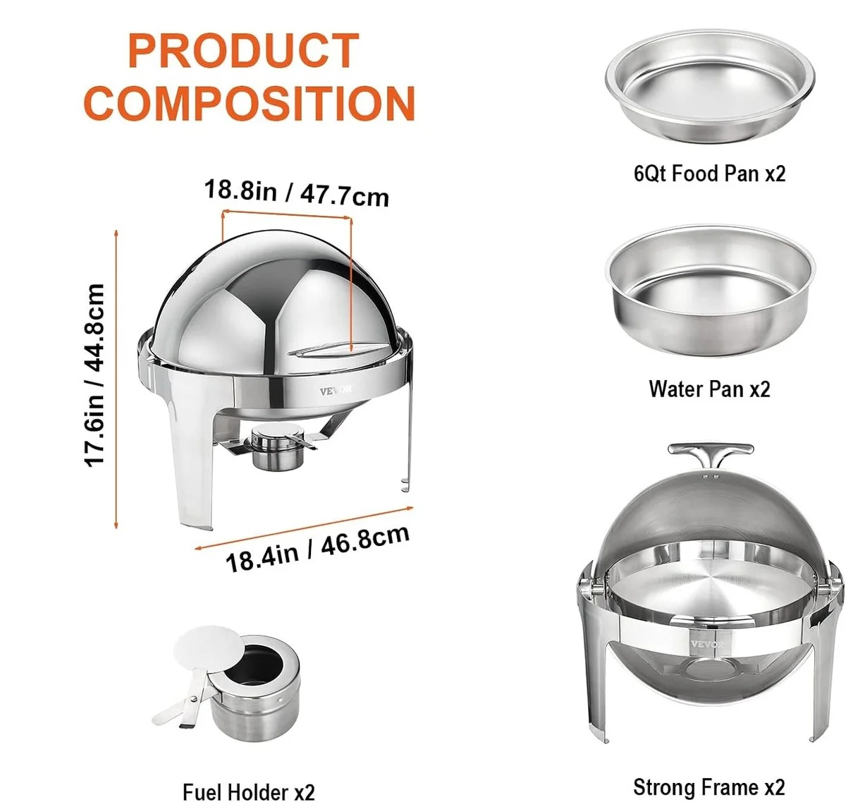 Contrairement aux modèles utilisant de l'acier SS401, ce chafing dish est fabriqué en SS201, une nuance alimentaire plus résistante à la corrosion et au nettoyage intensif. Sa construction permet un rangement facile dans un placard standard sans démontage complexe. La finition polie facilite l'entretien quotidien et garde son éclat sur le long terme.