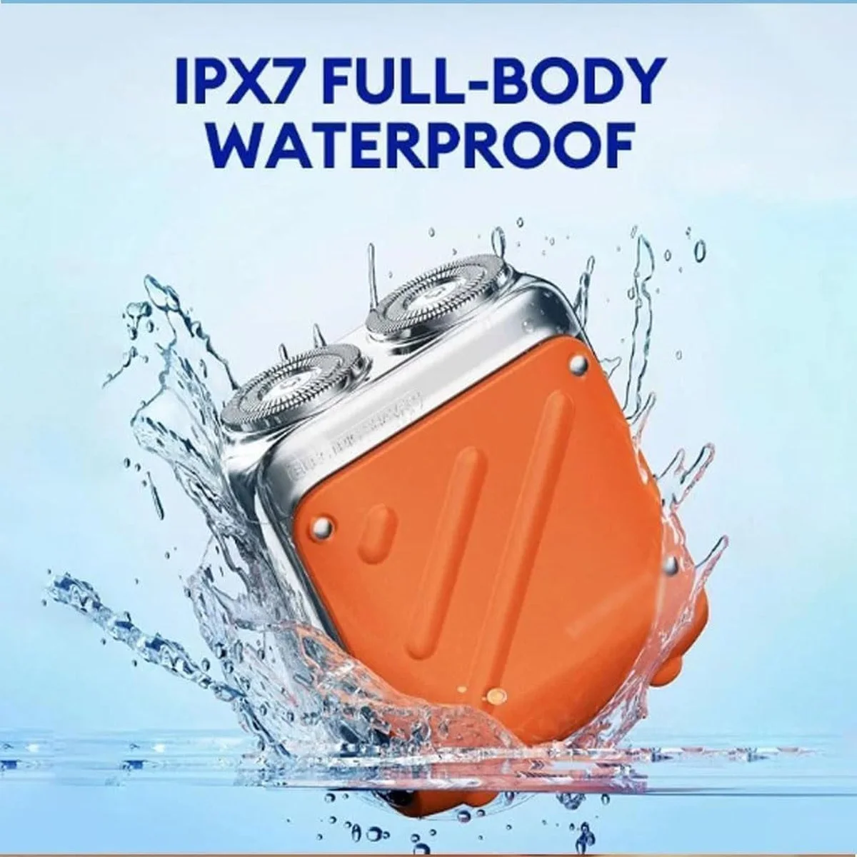Le boîtier est intégralement étanche IPX7. Rasez-vous sous la douche ou rincez la tête directement sous le robinet — aucun risque pour l'appareil, entretien en quelques secondes.