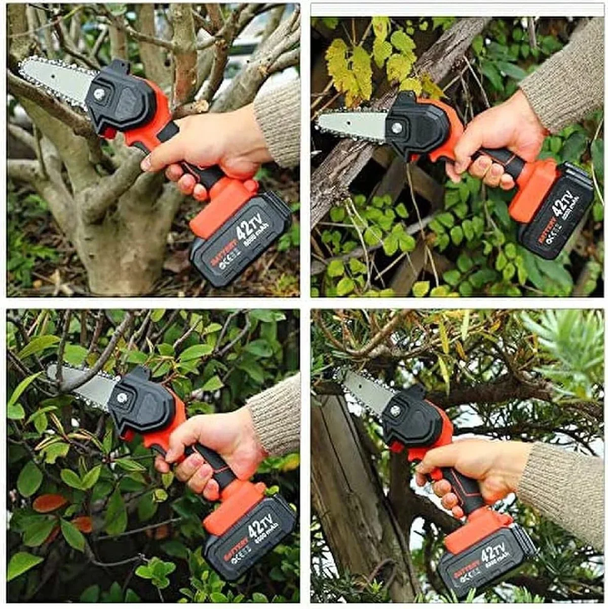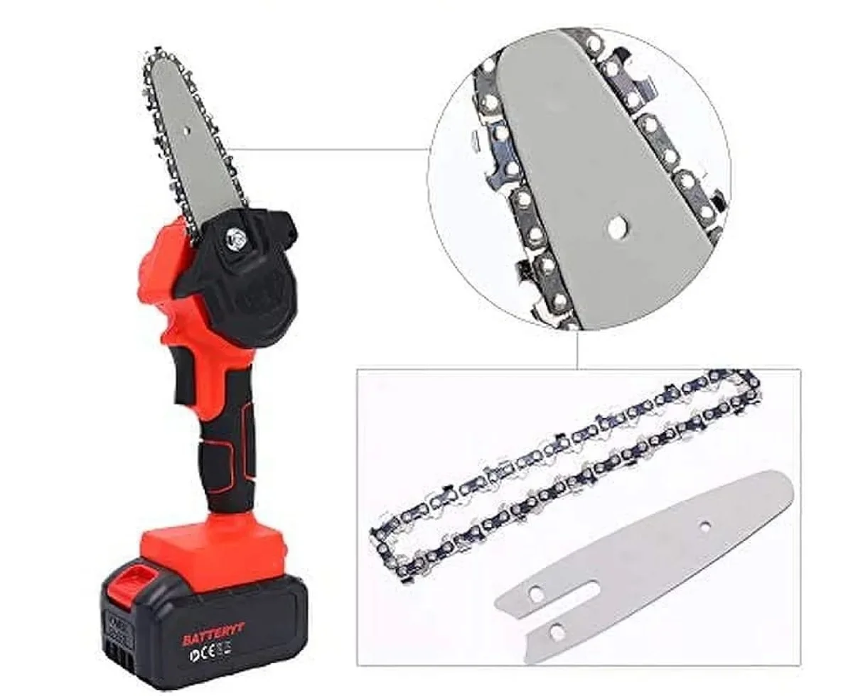 Mini Tronçonneuse Sans Fil 4 Pouces — Batterie 42V 6000mAh, Moteur Cuivre 550W, Élagage et Coupe de Bois, Ultra-Légère 1,2 kg