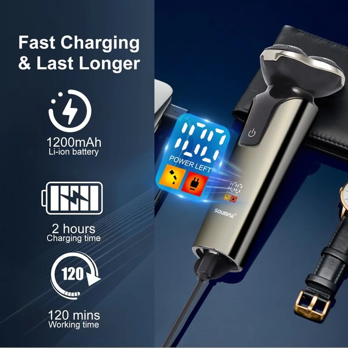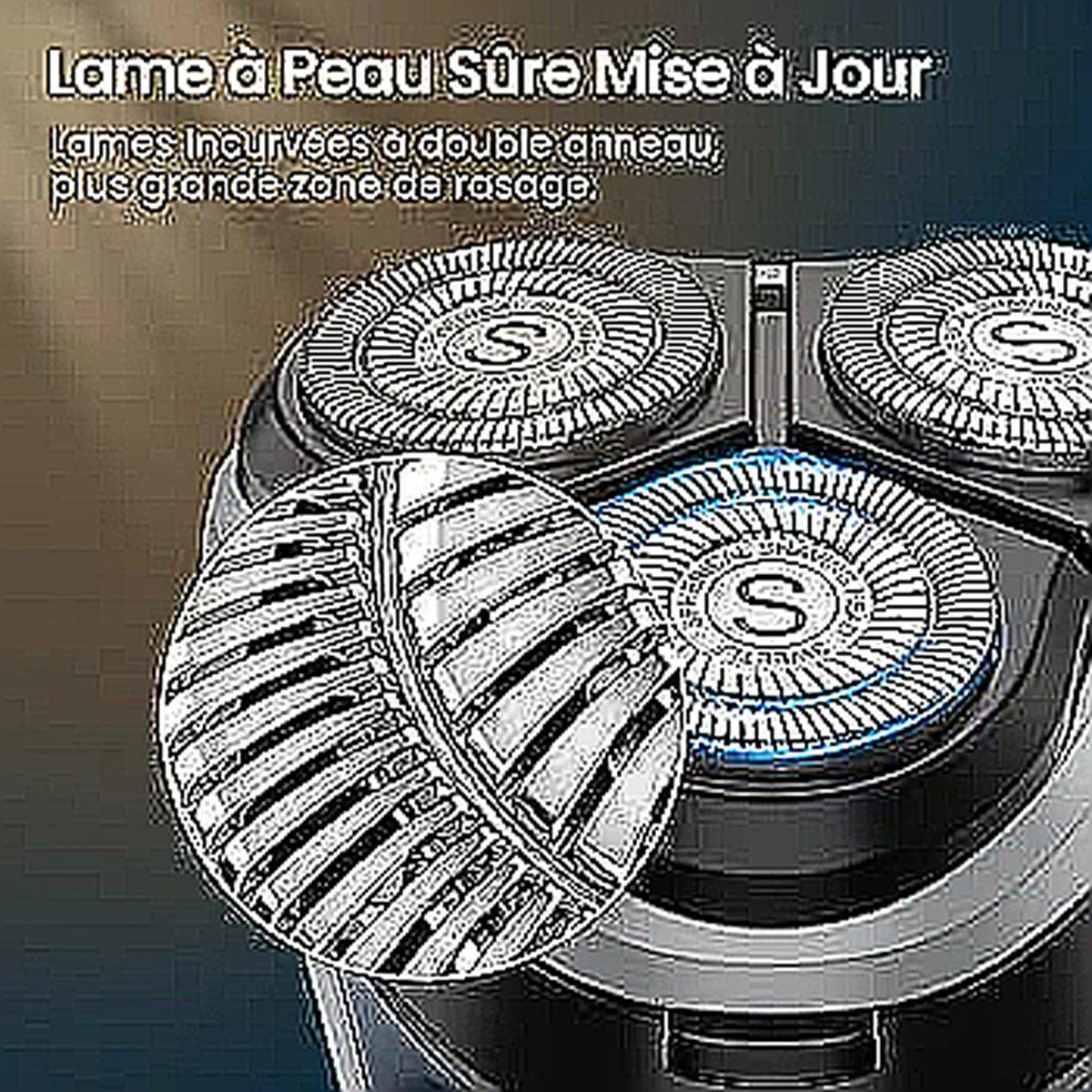 Rasoir Electrique Rotatif Homme 3 Têtes Flottantes — Etanche IPX7, Rasage Sec & Humide, Batterie 1200mAh, Affichage LED